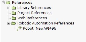 The new reference is added to the Robotic Automation references and automatically creates a corresponding service.