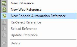 | 3. | Go to Robotic Automation References, right-click and select New Robotic Automation Reference. |
