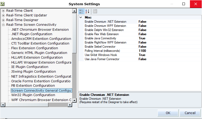 From version 7.3, the connector installation process was changed so that all available connectors and extensions are now installed. This means that you don't have to re-install the Real-Time Designer to change your connector setup. Some of the connectors and extensions are disabled by default. If you need to use these, you can enable them from the System Settings.
