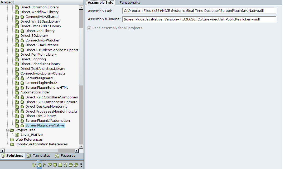 You can view the functionality of a Java Native screen element without capturing it by selecting the corresponding library in the Real-Time Designer.