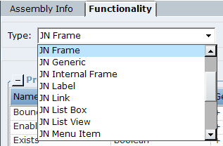 Select the Functionality tab, then select a Java Native screen element type from the Type drop-down list.