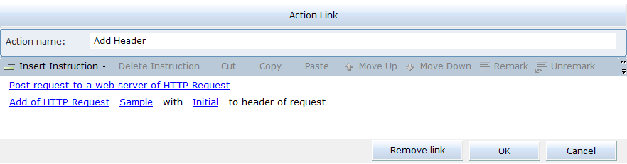 As you can see, this link posts the request to the Web server, and then adds a header called Sample with a value of Initial to the request.