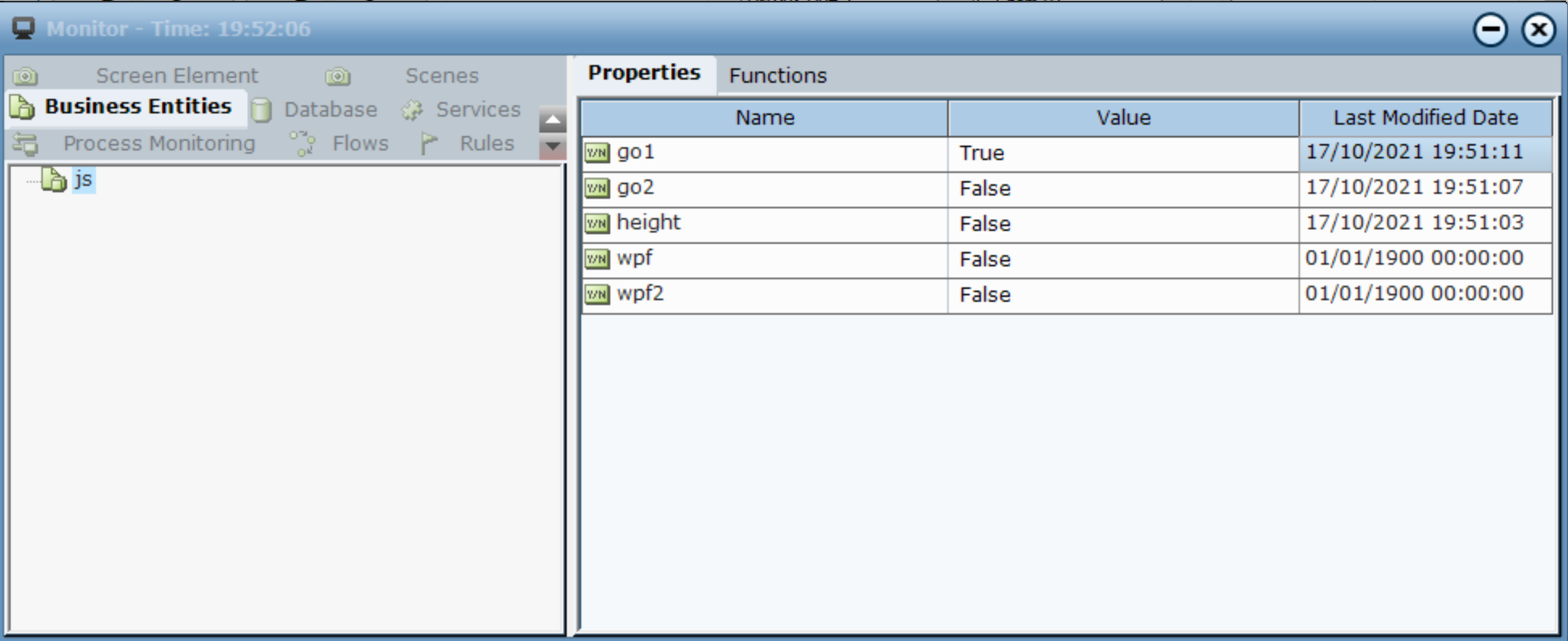 9. Test each of the scripts, by selecting the Business Entities tab and then setting the value of the required entity to True.