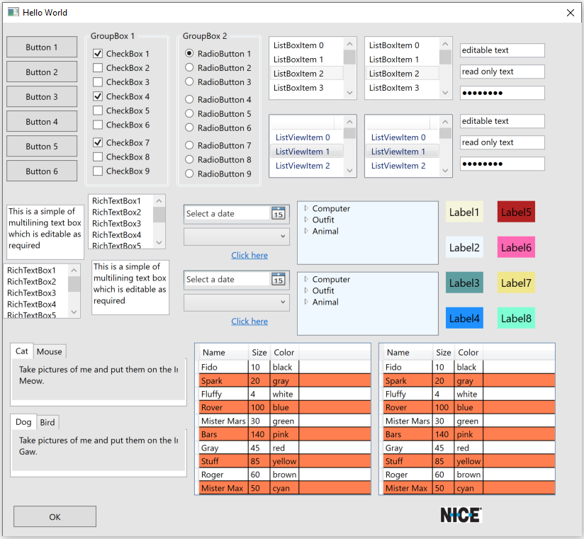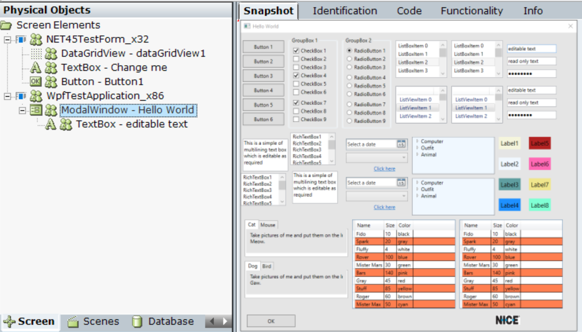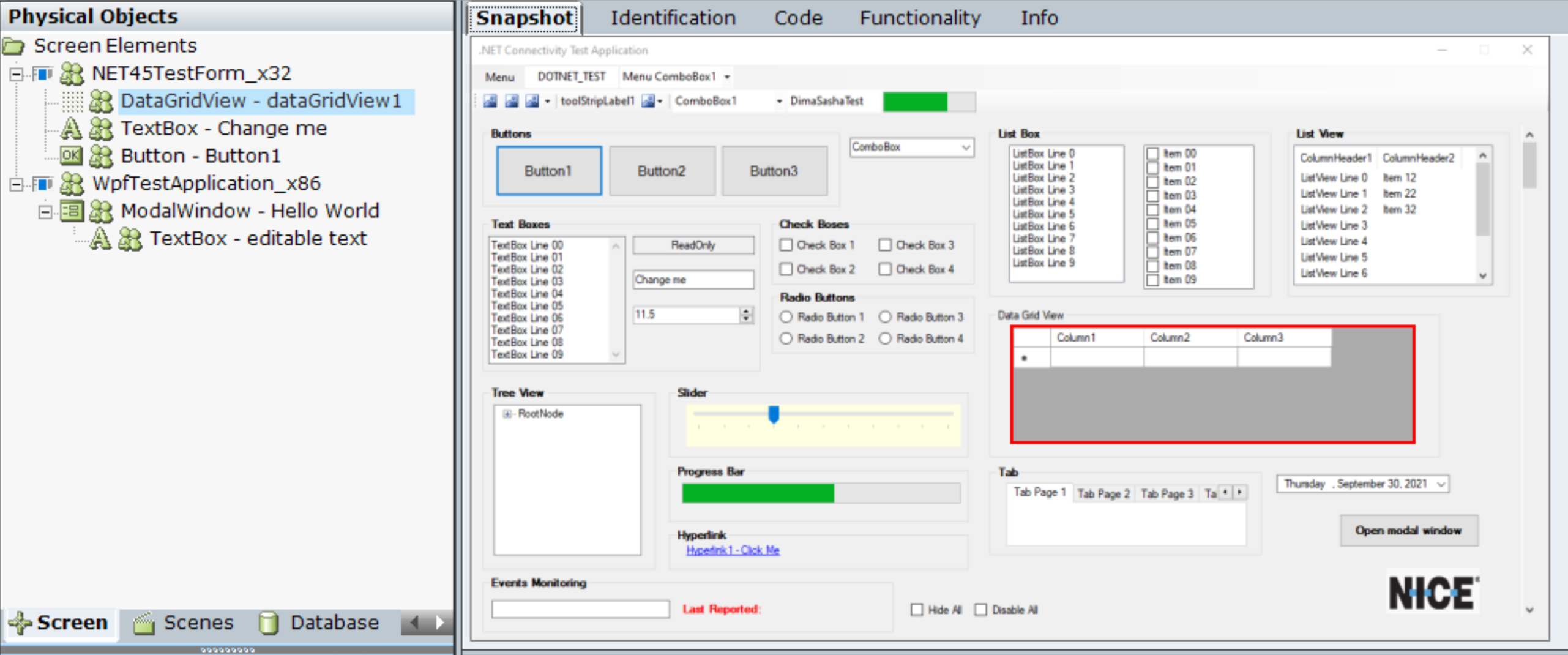 3. The sample includes a .NET Window (captured from the sample NET45TestForm_x32.exe application) with three captured screen elements:
