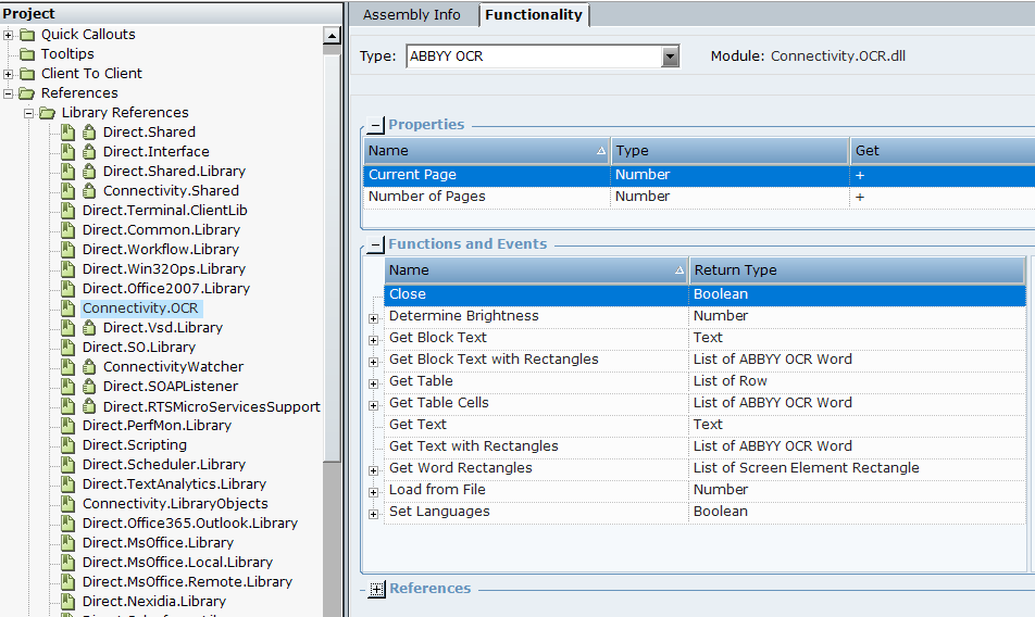 Under the References section, expand the Library References node, and select Connectivity.OCR.
