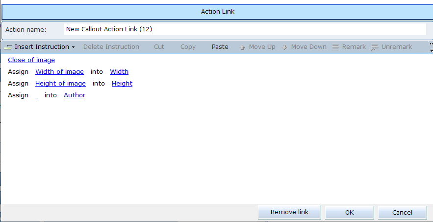 4. To view the images functionality, select an entity on the callout and click Insert an action.