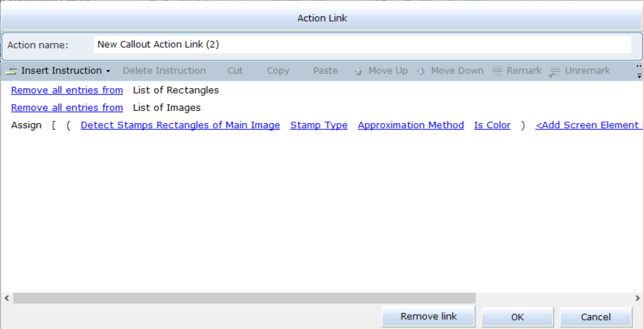 To view the images functionality, select an entity on the callout and click Insert an action. |
