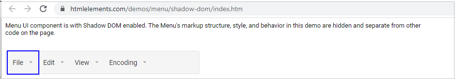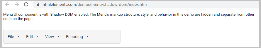 The menu component is shadow DOM-enabled and its markup structure, style, and behavior are hidden and separate from other code on the page.