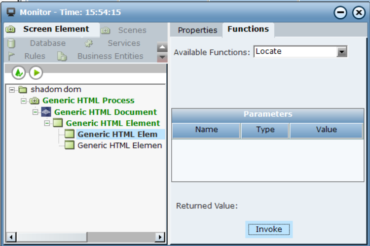 You can invoke the Locate function on the captured shadow DOM element. See Screen Element Functionality Reference.