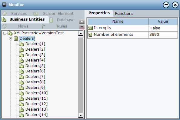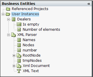 This topic describes a sample project implementation of an XML parser. The dealersample.txt source file is a text file with source content extracted from an XML file. The file does not have a root node. The root node will be added in the project.