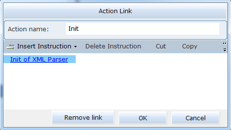 2. Under XML Parser, add an Init function. Do this by inserting the following instructions: