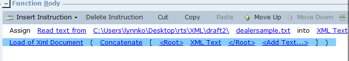 Load of Xml Document ( Concatenate [ <Root> XML Text </Root> <Add Text...> ] )