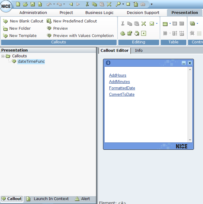 2. Open the project and navigate to Presentation > Callouts select dateTimeFunc.