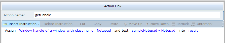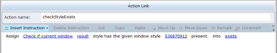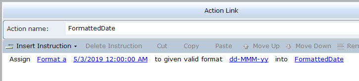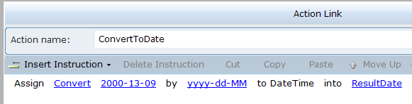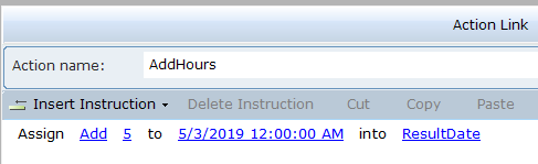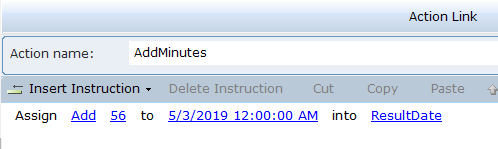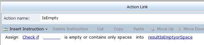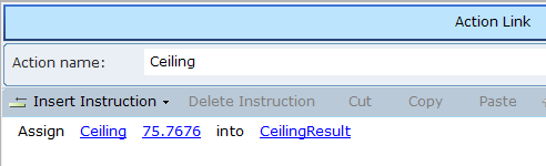 3. Select the action link, and then click on Insert an Action to view the function.