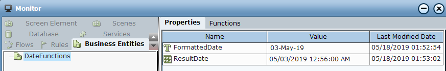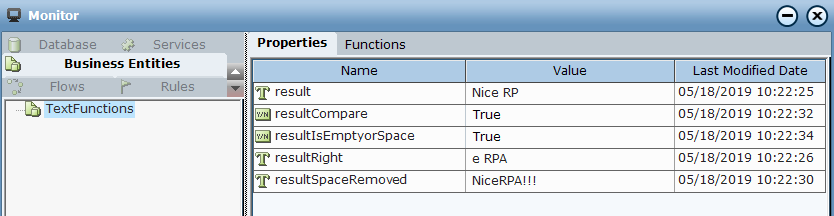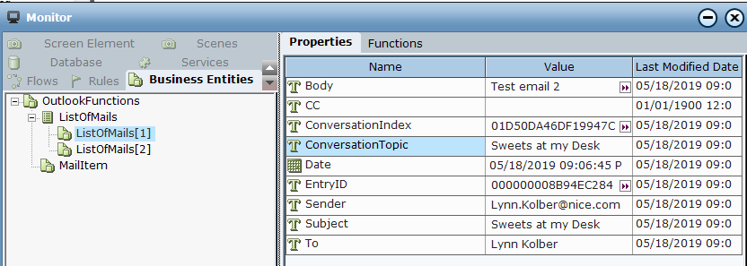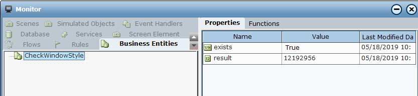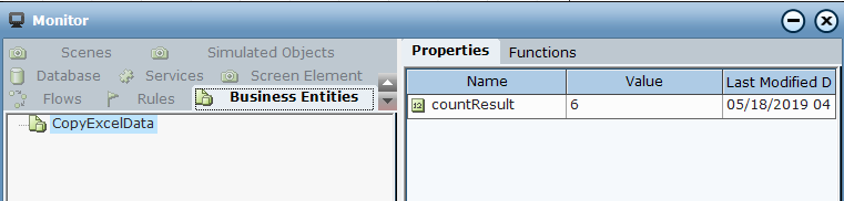 6. Open the Monitor to view the business entity values.