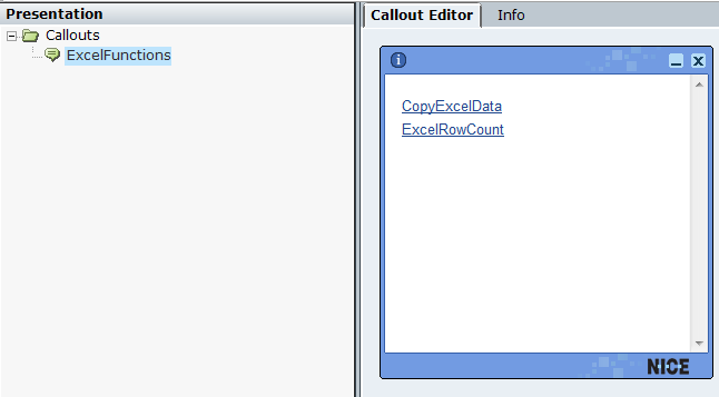 3. Open the project and navigate to Presentation > Callouts select ExcelFunctions.