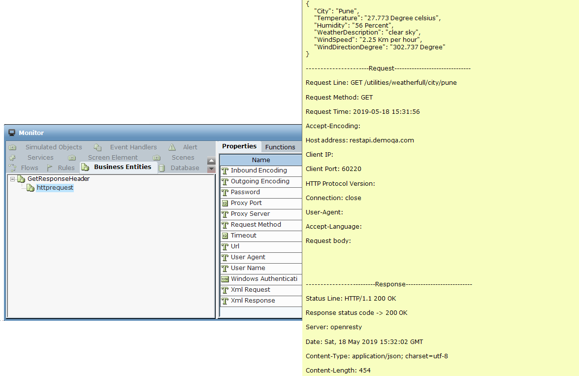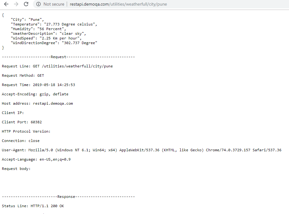 This sample will get the response header for: http://restapi.demoqa.com/utilities/weatherfull/city/pune.