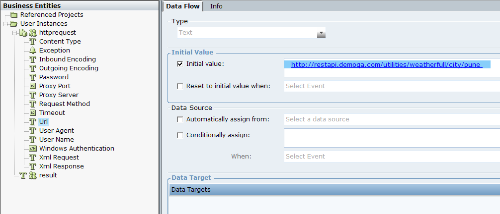 4. Select Business Entities to view the user instance used in this project