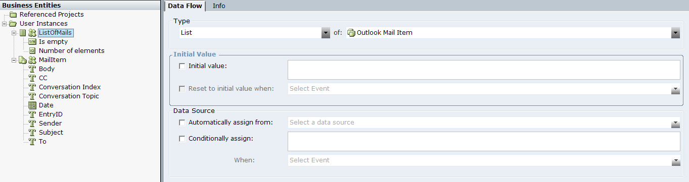 6. Select Business Entities to view the user instances used in this project