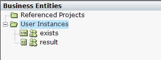 4. Select Business Entities to view the user instances used in this project