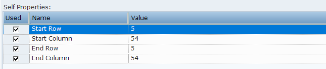 | 5. | The Self Properties section lists the properties that can be used to uniquely identify the HLLAPI Edit screen element type. The Real-Time Designer automatically selects the best properties to identify screen elements, and selects them in the Used column. |