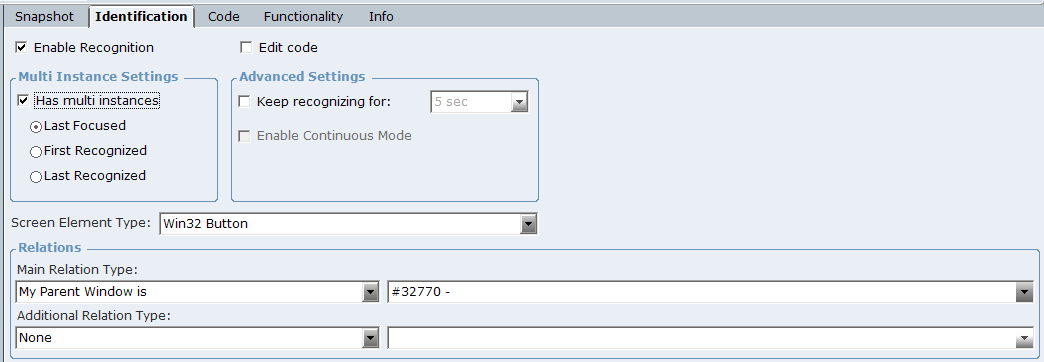 Unlock Active Instance: This function unlocks the active instance locked by the Activate And Lock Instance function, and therefore must be applied on the same screen element. Unlocking the active screen element resumes default recognition behavior.