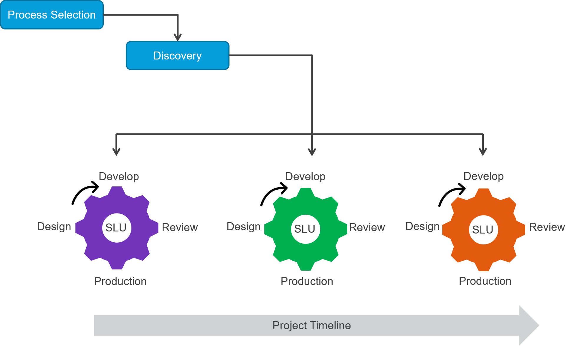 Start the design with the most common SLU to allow immediate development execution of the process.
