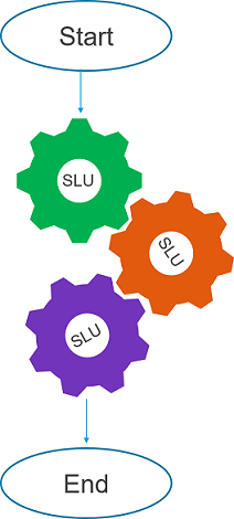 There is no requirement to have a minimum or maximum number of steps in an SLU. This helps to ensure function reusability. For example, a minimal SLU may be a button click or a value assignment, and at the maximum, the full process in a small project.