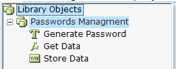 Password management functionality is represented by functions available in the Library Objects and predefined business entities.